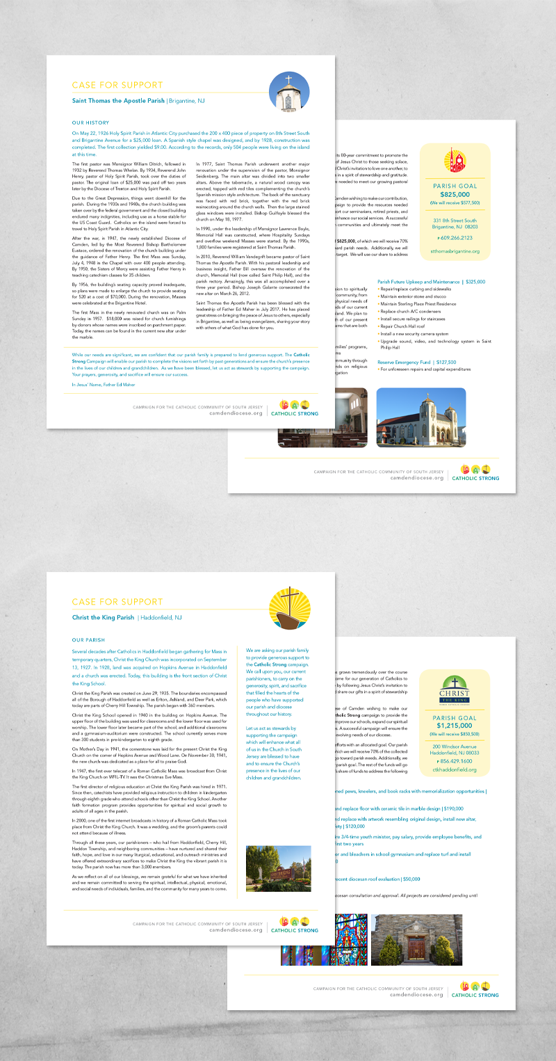 The Camden Diocese worked with the Kiva Group to design, print and help launch a major fundraising campaign. I created a logo for them and followed that look and color scheme through all their print pieces.
