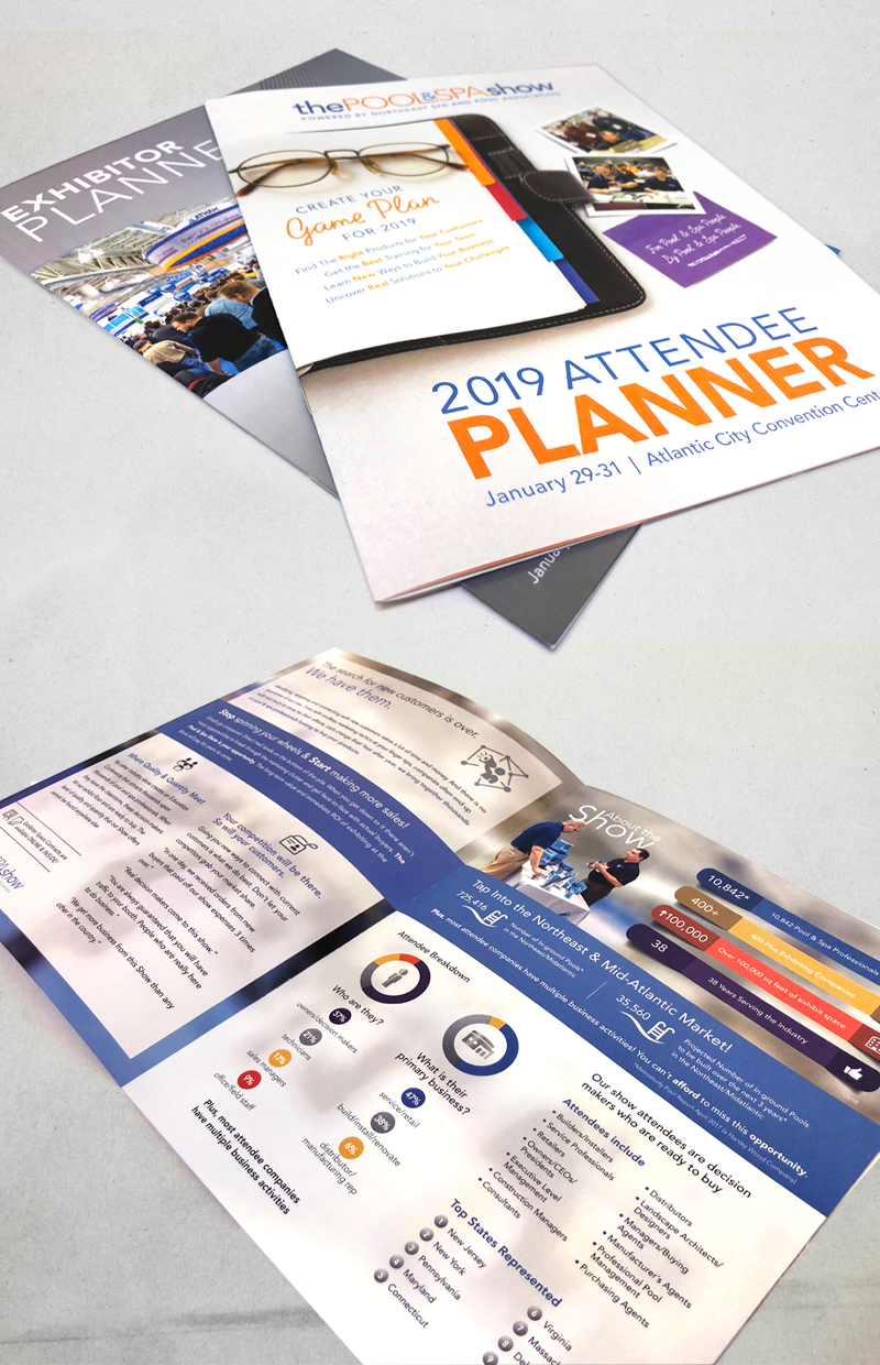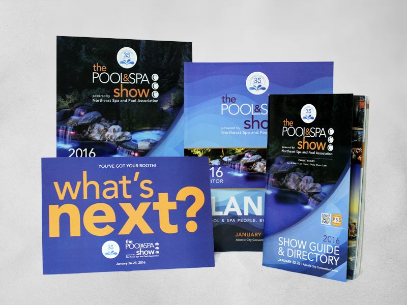The Kiva Group partnered with NESPA to design and print their Pool & Spa Show material. I designed postcards, brochures, guides, invitations and signage for them.