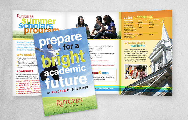 Through the Kiva Group I have designed many brochures and course guides for Rutgers University. Working with both the Camden and New Brunswick campuses, I made sure to follow their branding guidelines while creating engaging designs directed towards age-specific audiences.