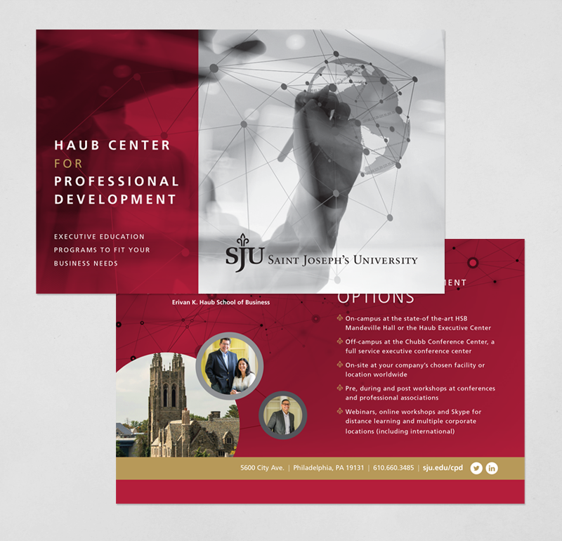 While working with The Kiva Group, I created this brochure for SJU’s Haub Center for Professional Development small business education programs.