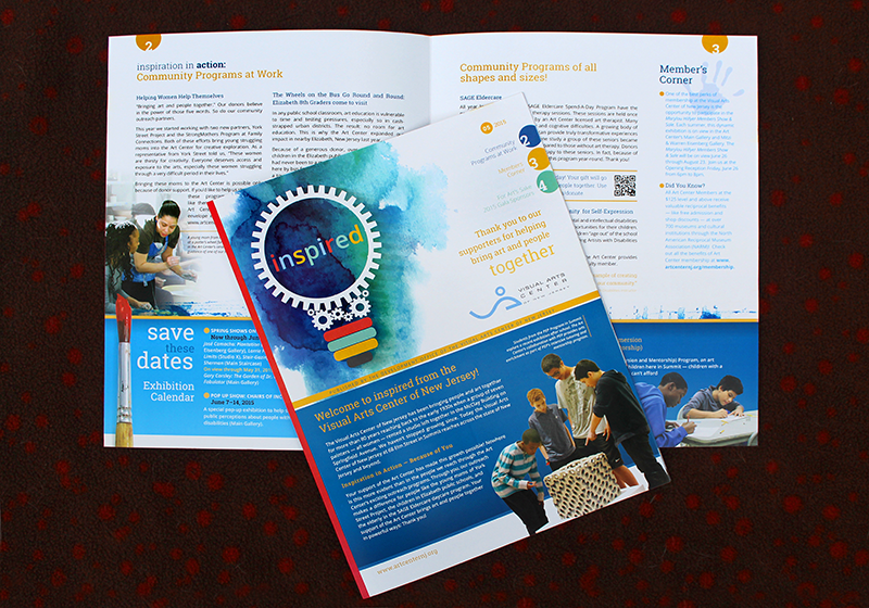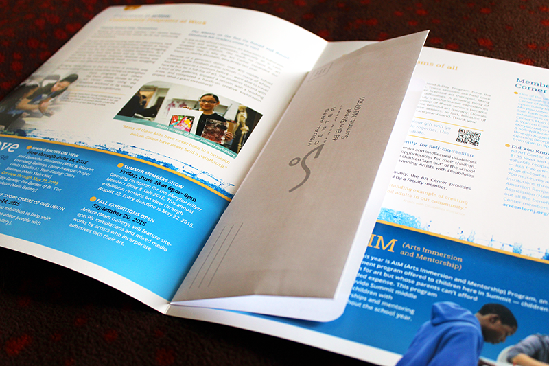Visual Arts Center of New Jersey Newsletter and remit envelope design for the Visual Arts Center of New Jersey.